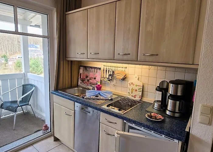 "Residenz Seeblick" Studio 22 Mit Blick Auf Die Kreidefelsen dysponuje balkonem oraz takimi udogodnieniami jak zmywarka. 1 łazienka to gwarancja dodatkowego komfortu. Znajdziesz tu również suszarkę do włosów i ręczniki.